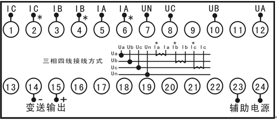 提供了2路模擬量的變送輸出功能,分別作為有功功率和無功功率的變送輸出,其對應關系數量可任意設置。