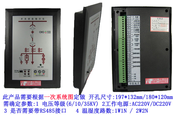 開關(guān)狀態(tài)指示儀集成了一次回路模擬圖、斷路器位置、開關(guān)狀態(tài)、接地閘刀位置、彈簧儲(chǔ)能狀態(tài)、高壓帶電指示、高壓帶點(diǎn)閉鎖及溫、濕度控制等多功能于一體,指示功能可分可合,用戶選用時(shí)只要提供一次方案圖即可。另外產(chǎn)品還可以根據(jù)用戶的要求實(shí)現(xiàn)回路電量參數(shù)及溫、濕度等控制功能產(chǎn)品一體化布局配套裝備于開關(guān)柜,這將簡化過去開關(guān)柜的面板布局。它將取代現(xiàn)有的一次回路模擬指示牌、電磁式開關(guān)狀態(tài)指示器、接地指示器等多種控制、指示裝置,同時(shí)選配通訊功能,可將所有開關(guān)狀態(tài)和溫濕度情況上傳至監(jiān)控中心。